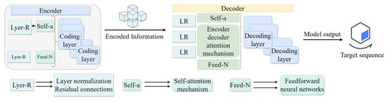 The Transformer model is composed of two primary components: the encoder and the decoder, as illustrated in Figure 9. Information flow between the encoder and decoder is mediated through a self-attention mechanism and feed-forward network. The Transformer’s key advantage lies in its parallel processing architecture, which simultaneously analyzes all sequence elements while effectively capturing long-range dependencies.