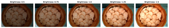 Second, we conducted a robustness evaluation simulating variable lighting conditions. We selected the quantized YOLOv11n model due to its low resource usage and strong accuracy–efficiency balance across all tested configurations. Test images were synthetically augmented using varying brightness factors (see Figure 3), and classification accuracy was recorded as a function of brightness. This setup approximates real-world environmental variability, such as shadows or strong light exposure, and provides a preliminary assessment of model stability under common deployment challenges.