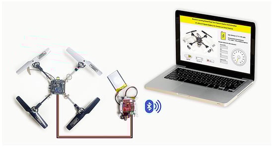 Figure 24 illustrates the experimental setup and results of the remaining useful life (RUL) estimation system for a lithium-polymer (LiPo) battery used in an unmanned aerial vehicle (UAV). The image shows a functional UAV equipped with a Raspberry Pi RP2040 microcontroller, which processes real-time battery sensor data and predicts the RUL using an embedded feedforward neural network (FFNN) model. The predictions are transmitted via Bluetooth to a laptop running a LabVIEW application with a state machine architecture. The LabVIEW interface displays key battery parameters such as capacity, state of health (SOH), and RUL in real time, offering a user-friendly visualization of the battery’s performance. Validation experiments were conducted on an 80 g UAV powered by a 1100 mAh LiPo battery. The results were obtained using the input features processed on a Raspberry Pi Pico RP2040 W, running a trained FFNN (feedforward neural network) model.