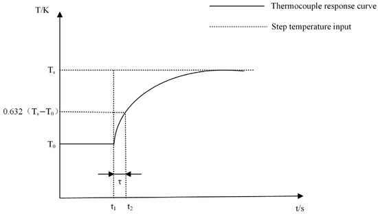 Furthermore, the selection of the response termination point of the measured thermocouple to the step temperature determines the total step temperature quantity and directly affects the value. Many studies have shown that when , it can be regarded as ; that is, the step temperature tends to equilibrium after 5. Therefore, the stable duration for the thermocouple to reach the expected step temperature needs to be greater than 5 in order to obtain an accurate time constant value.