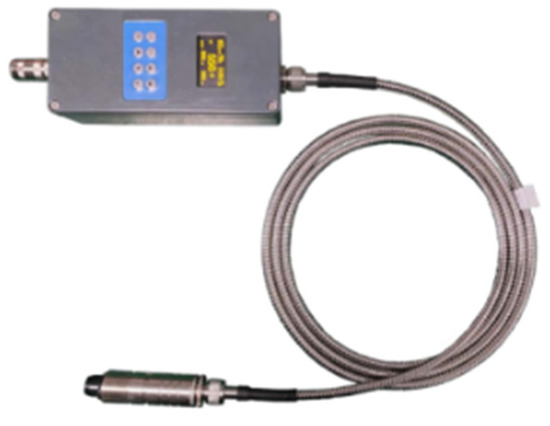 When choosing the appropriate temperature measurement module, the first thing to consider is that the response speed of the temperature measurement module must be faster than that of the thermocouple so that it can be used as the calibration source of the thermocouple. Secondly, the output of the temperature measurement module should have at least two channels, simultaneously fulfilling the functions of data acquisition and serving as the input signal for the feedback controller. Finally, due to the testing requirements, the temperature measurement module needs to have the characteristic of high-temperature resistance. Therefore, the temperature measurement module used in the system designed in this paper is a high-performance and intelligent colorimetric optical fiber infrared thermometer. It is composed of a lens, optical fiber, and processing components. The optical fiber and lens assembly can withstand a high temperature of 250 °C without additional cooling. It adopts a stainless steel lens, an aluminum diecast housing, and a protection grade of IP65. A physical diagram of the colorimetric thermometer is shown in Figure 5, and its main parameters are presented in Table 2.