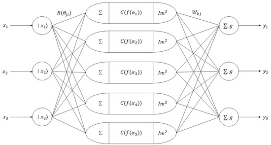 In this formula, g (·) is the activation function of the output layer; i = 1, 2, …, n; j = 1, 2, …, p; and k = 1, 2, …, m, where n is the number of neurons in the input layer, which is equal to 3; p is the number of neurons in the hidden layer, which is equal to 5; and m is the number of neurons in the output layer, which is equal to 3.