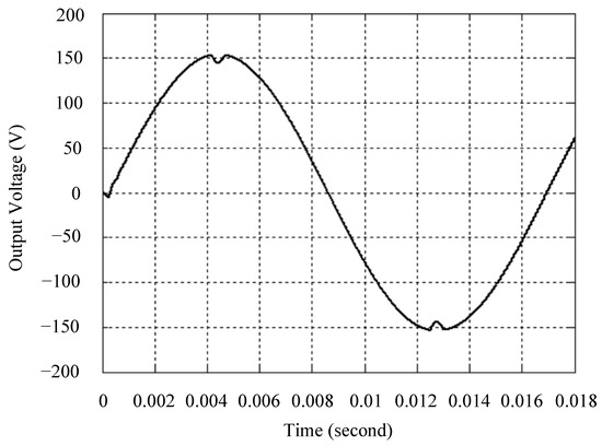 Simulated output voltage for the suggested control technique under rectifier-type nonlinear loading.