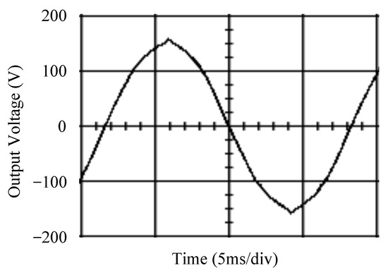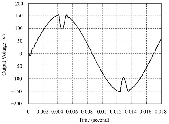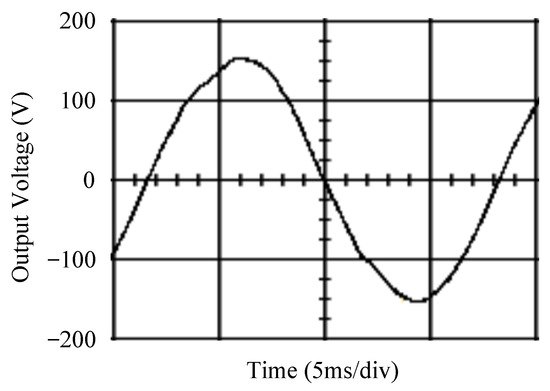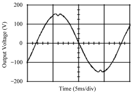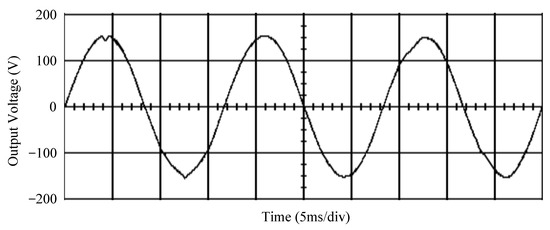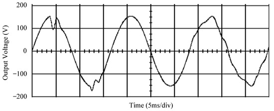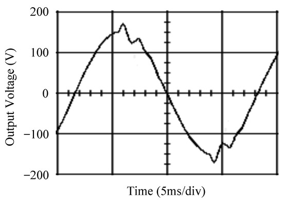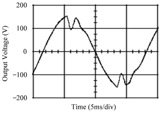 Experimental output voltage for the suggested control technique under rectifier-type nonlinear loading.