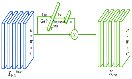 Among them, fc1 and fc2 are two fully connected layers, and the activation function used is the sigmoid function. The variable is obtained by applying average pooling to , while itself is derived by concatenating .
