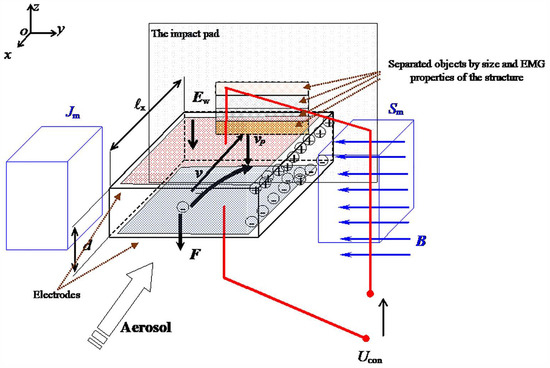 The works [9,10,11,12,13,14,15,16,17,18,19] suggest the use and application of several non-standard options for object detection based on the properties of biological nano-objects and their detection in airborne aerosols [2,3,4,5,6,7,8,9]. The first approach to the detection of biological objects (viruses, bacteria) is based on the findings published in papers [2,3,4,5,6,7,8,9] and is based on the use of electromagnetic properties [10,11,12] of agents in the dimensional categories of nano-objects and subnano-objects. Such a solution is based on the separation of agents based on Wien filter principles (Figure 1). The basic concept/design of the Wien filter space for the proposed purposes is shown in Figure 1.