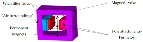 Principal arrangement of the classical concept of the Wien filter—magnetic circuit.