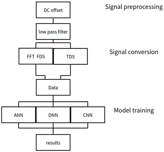 Inspired by these studies, we adopt high-frequency energy spikes in the frequency domain as recognition features and compare three deep learning models—an Artificial Neural Network (ANN), a Deep Neural Network (DNN), and a Convolutional Neural Network (CNN)—to evaluate their classification performance and computational cost. Lai et al. [12] also integrated time domain, frequency domain, and time frequency analyses (e.g., DWT and STFT) into the deep learning frameworks to enhance the recognition capability of various mechanical faults, which serves as a structural reference for our study.