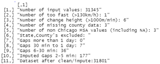 Figure 4 provides summary output statistics from running step 2 of AGPSR using user-controllable parameters for speed, height changes, incorrect county data, and gap size, showing limited amounts of missing data, with 177 data values imputed.
