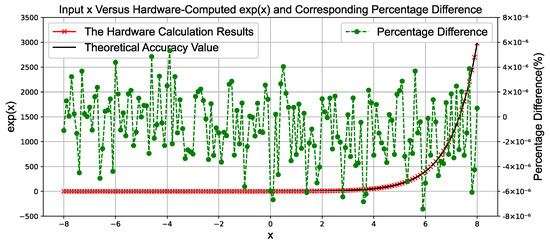 For the single-precision floating-point function, due to the limitations of the single-precision floating-point representation range, the input domain is not infinite but has upper and lower bounds. The domain of the single-precision floating-point function is defined as [−87.33, 88.72], with the maximum output value being and the minimum output value being .