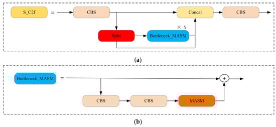 The structure of S_C2f and Bottleneck_MASM. (a) S_C2f; (b) Bottleneck_MASM.