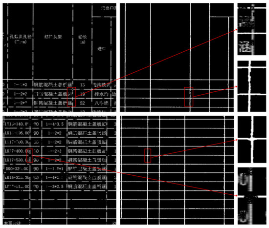 Tables in road engineering drawings exhibit domain-specific characteristics that distinguish them from those in general document contexts. While they typically follow standardized design conventions with regular row-column structures and explicit gridlines, several challenges complicate their automated extraction. First, degraded borders—caused by environmental wear, aging, or scanning imperfections—often result in broken or blurred gridlines that hinder structural recognition. Second, character adjoining and background interference frequently occur when text elements merge with borders or the background during digitization, disrupting the visual distinction between content and structure. Third, the scale of infrastructure projects demands high-throughput processing, rendering manual digitization impractical and emphasizing the necessity for robust and automated border extraction solutions.