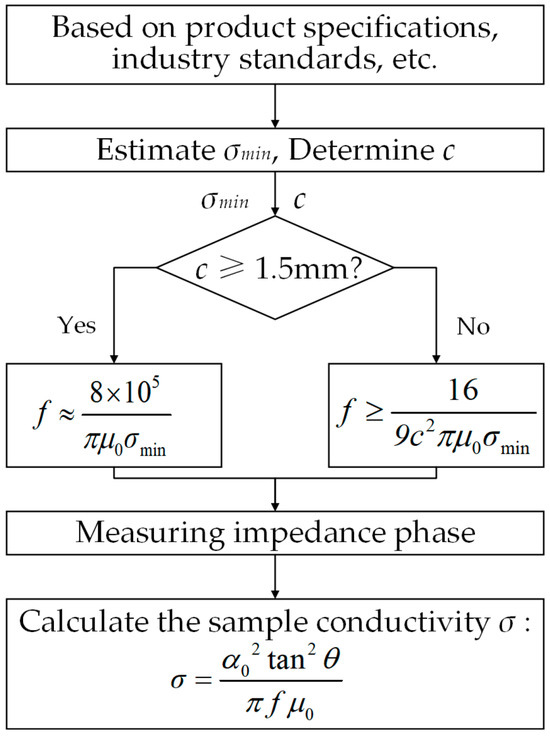 Based on the preceding analysis, the excitation frequency selection criterion is derived, as shown in Equation (20), where σmin represents the minimum estimated conductivity based on product specifications or industry standards. This criterion comprehensively accounts for both sample thickness and conductivity, providing a theoretical basis for frequency selection in practical measurements.