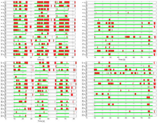 Another problem of detection is the continuity of responses, which is related to the sensitivity of the EEG channel to the specific cognitive task and which, implicitly, affects the accuracy of the detector. The issue of the sensitivity of the EEG channel is related to the number of true positive (TP) activations in relation to the imposed cognitive load; thus, the greater the number of TP responses or, conversely, the smaller the number of FN responses, the more sensitive the channel is. Figure 9 shows that channels 1 and 2 are more sensitive than the others and that channel 4 is the worst.