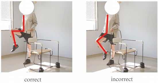 Based on the experimental results, it was confirmed that using joint angles alone allows for the accurate evaluation of movement correctness. At the same time, the limitations of muscle activation indicators, such as surface electromyography (sEMG) in chair-based exercise (CBE) training for older adults, were also revealed. In most tested actions, the classification based on joint angle data captured by a single camera showed clear separability between correct and incorrect executions. Although the sEMG data also indicated higher muscle activation during correct movements, it was found that due to significant inter-individual variability among older adults, sEMG is not suitable as a standalone indicator for judging movement correctness. Moreover, using sEMG requires measuring each individual’s maximum voluntary contraction (MVC), which is difficult to implement under practical training conditions.