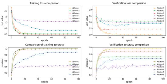 Ablation experiment loss and accuracy comparison chart.