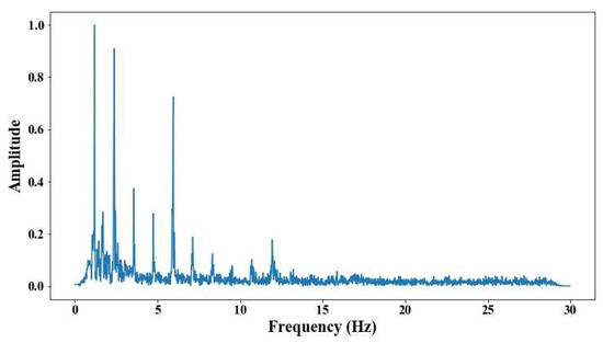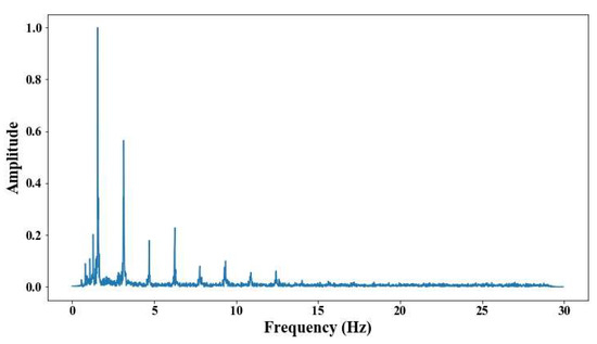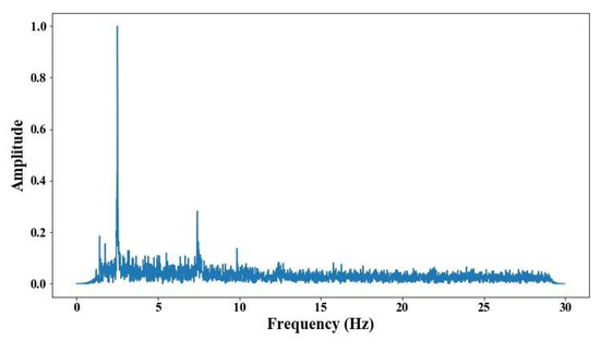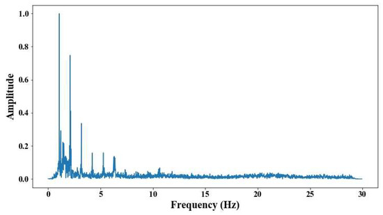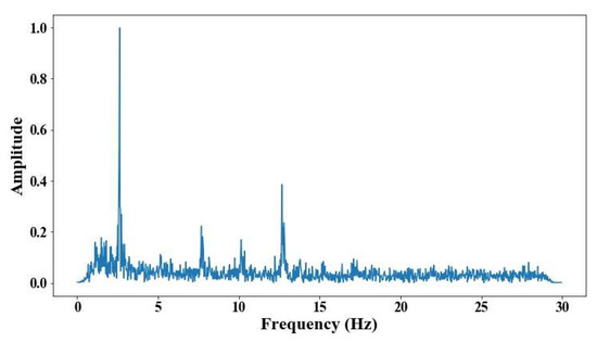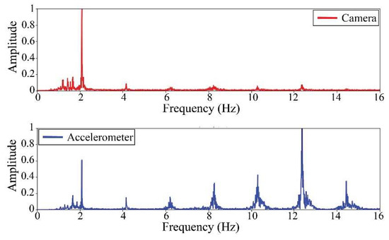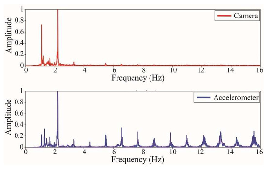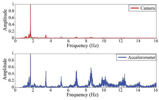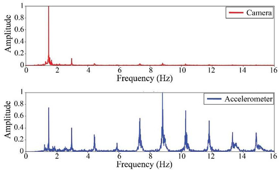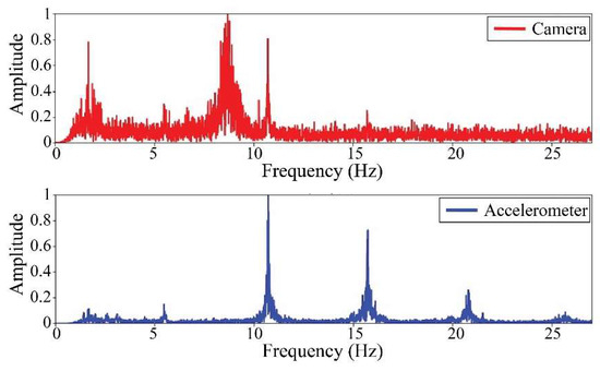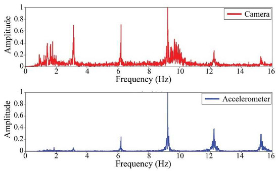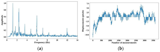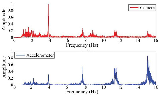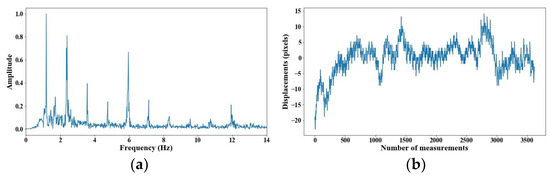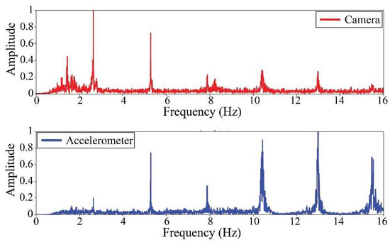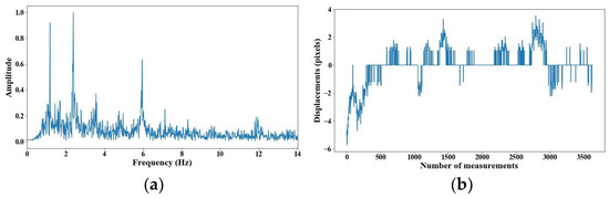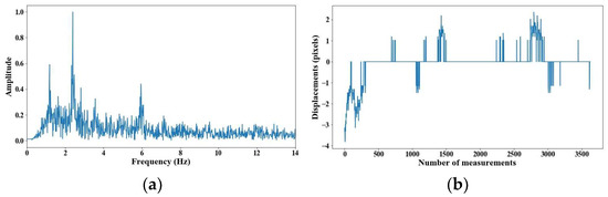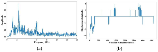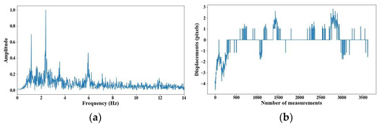 From the displacements in pixels, values of less than 1 were substituted for a non-displacement sampling. Subsequently, an FFT algorithm was applied to identify the vibration frequencies. These results are presented in Table 5.