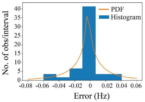 Since the indirect tension force is calculated using three independent measurements (direct tension, initial vibration frequency, and subsequent vibration frequency) with independent errors, it is subject to error propagation. The following Equation (8), as provided in [31], can be applied to model the effects of the independent measurements on the tension force estimation: