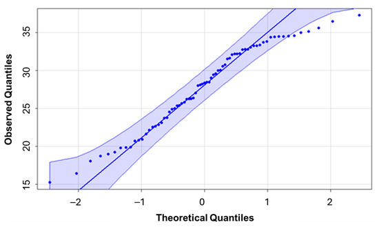 The LNC data showed a normal distribution (Figure 6), according to the Kolmogorov–Smirnov test (p-value 0.2884). The data therefore meet the assumption of normality required for the application of parametric statistical analyses and the development of predictive models.