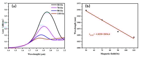 - Huang, H.; Zhang, Z.; Yu, Y.; Zhou, L.; Tao, Y.; Li, G.; Yang, J. A Highly Magnetic Field Sensitive Photonic Crystal Fiber Based on Surface Plasmon Resonance. Sensors 2020, 20, 5193. [Google Scholar] [CrossRef] [PubMed]