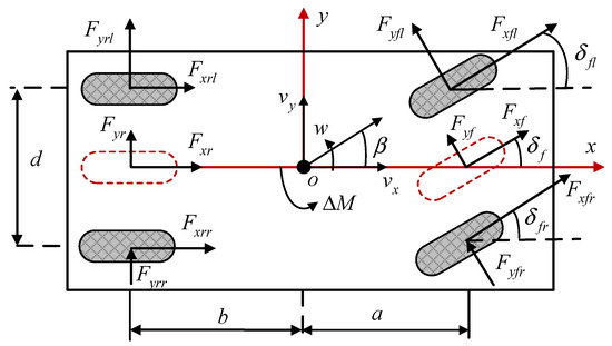 2]. Compared with traditional centralized driving architectures, DDEVs enable independent control of the driving torque at each wheel via individual motors, allowing for the flexible generation of direct yaw moments [