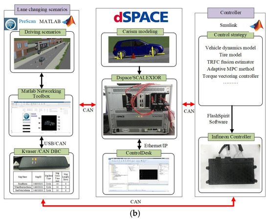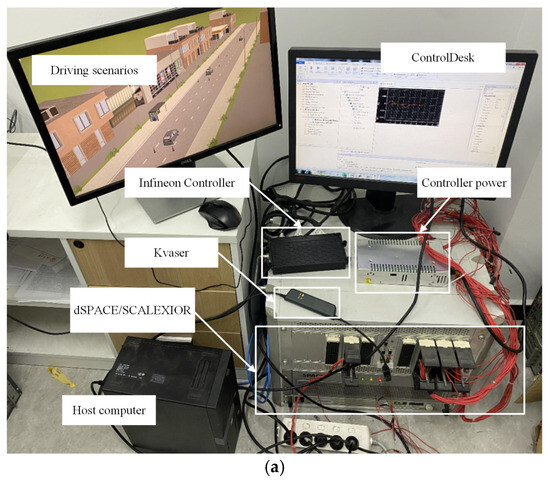 Figure 13a. The platform consists of dSPACE hardware, software systems, and vehicle control hardware. The detailed implementation process is illustrated in