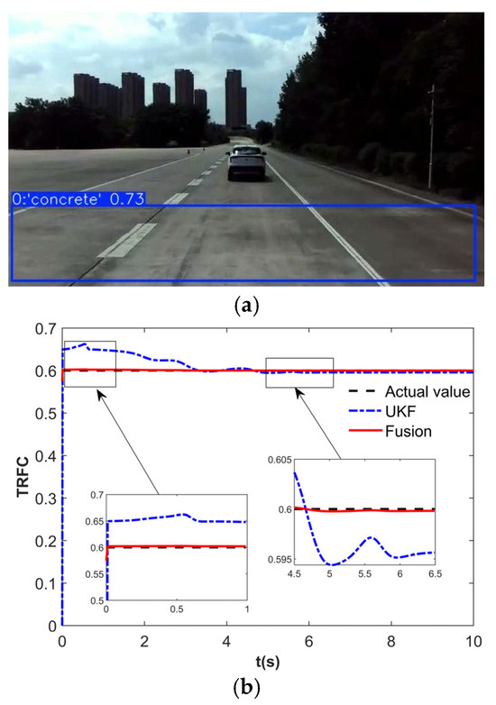 Figure 15. When the road is identified as concrete based on vision, the initial TRFC for the UKF estimator is set to 0.575, as shown in