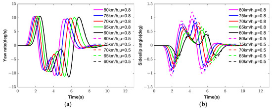 Figure 17, which illustrates the yaw rate and sideslip angle responses under ten combinations of vehicle speeds and TRFC. As shown in