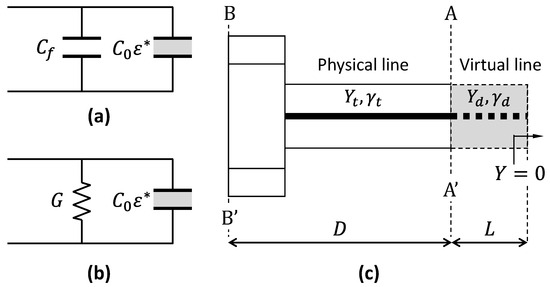 In the capacitive model, it is assumed that there is an evanescent electric field that penetrates into the sample, inducing a capacitive response. As shown in Figure 2a, the load admittance is given by [46]