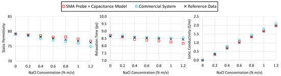 - Peyman, A.; Gabriel, C.; Grant, E.H. Complex Permittivity of Sodium Chloride Solutions at Microwave Frequencies. Bioelectromagnetics 2007, 28, 264–274. [Google Scholar] [CrossRef]
