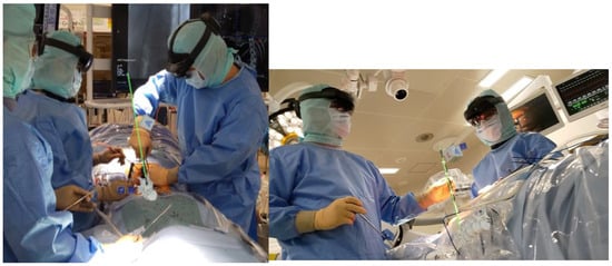 - Matsukawa, K.; Yato, Y. Smart glasses display device for fluoroscopically guided minimally invasive spinal instrumentation surgery: A preliminary study. J. Neurosurg. Spine 2021, 34, 150–155. [Google Scholar] [CrossRef]