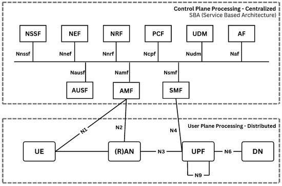 The 5G architecture is built on a service-oriented approach, where various functional entities work together to ensure efficient network operation. These entities are responsible for specific tasks such as authentication, mobility management, data forwarding, and session configuration. The modularity of this architecture enables greater flexibility, scalability, and interoperability among different network components, such as the following: