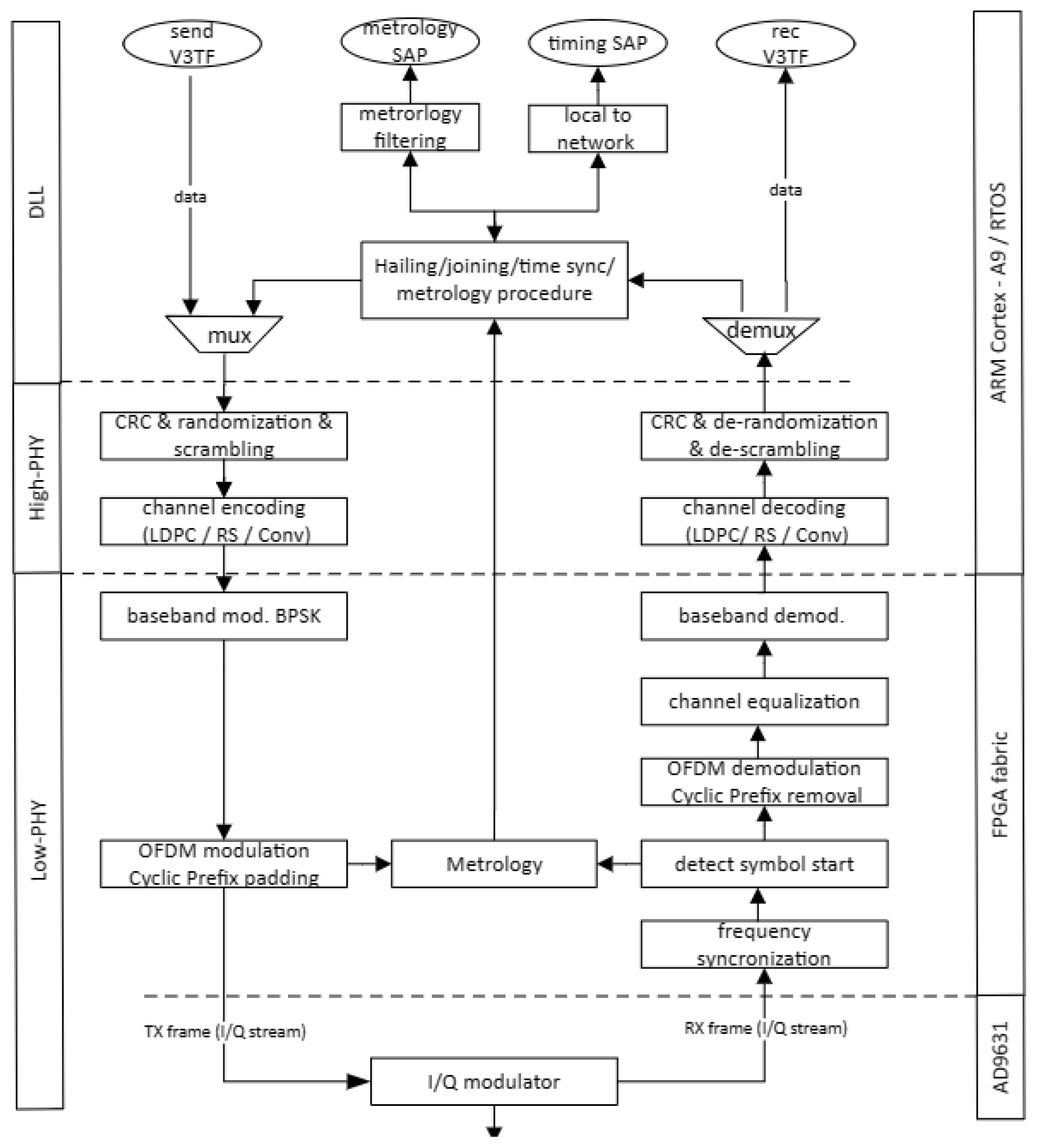- The resulting symbol is then modulated into RF frequencies by the AD9631 transceiver chip.