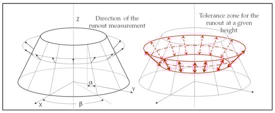 The case of the runout is a little different because the part’s defects are measured along a normal vector to the surface (