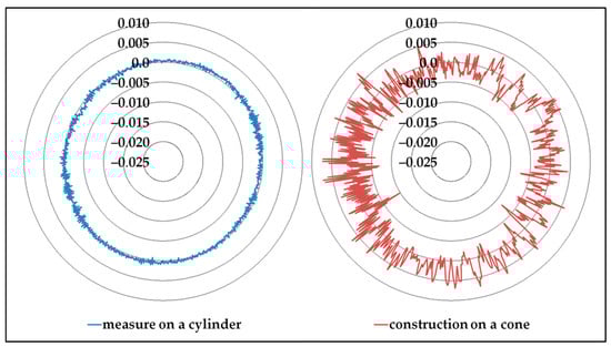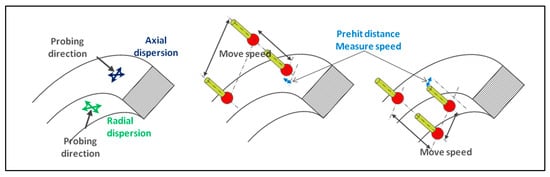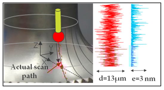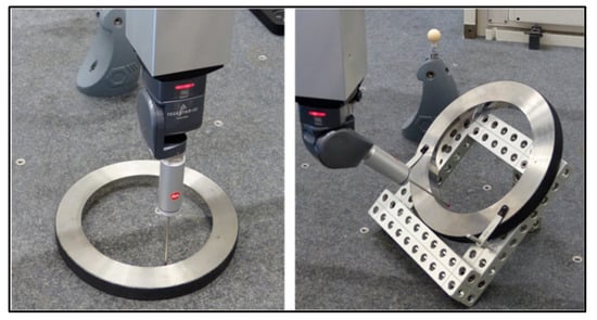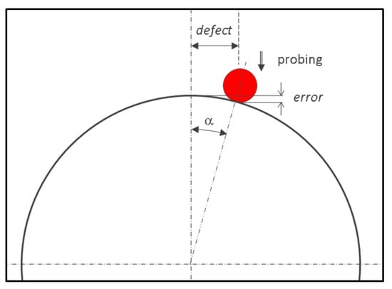 28]. Some TTP models are equipped with three spring-loaded contacts. Depending on the probing direction, one, two, or three contacts will open. The probing force is, therefore, linked to the force of one, two, or three springs, so the measurement of a circle may present a so-called “three-lobed” defect in the shape of a triangle. We limit the scope of our study to scanning heads, which avoid the three-lobed circles of the TTPs [