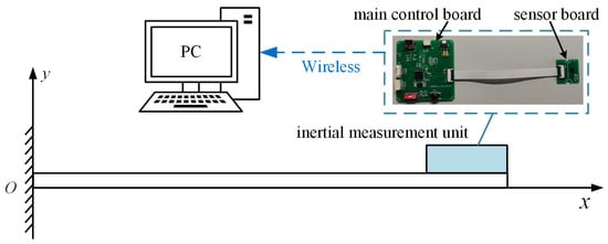 The remainder of this paper is organized as follows: Section 2 introduces the hardware and software system of the miniaturized inertial sensor. Section 3 discusses the relationship between the tilt angle and deflection during the cantilever beam bending vibration. Section 4 introduces the improved EKF. Section 5 presents simulation and experimental results, evaluating the measurement accuracy and real-time performance of the proposed new structural vibration sensing method. Section 6 presents the conclusions.