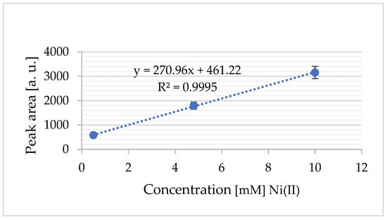 By measuring the area under the anodic peak and integrating this value into a standard addition plot, the concentration of oxidized nickel was determined (Figure 11). The standard deviation was calculated from n = 3 independent replicates.