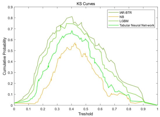 KS value of IAR-BTR, LGBM, Tabular Neural Network and NB.