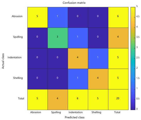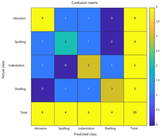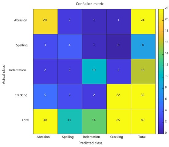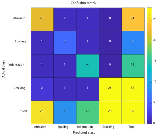 As detailed in Section 4.4, the enhanced PSO-RBF model incorporating hybrid optimization strategies (including genetic mutation and adaptive restart mechanisms) demonstrated significant performance improvements over the conventional RBF approach. Comparative analysis revealed that the optimized model achieved 87.5% peak accuracy (20-run average: 85.4% ± 1.6%) compared to the baseline 70.0%, while the Macro-F1 score improved from 0.645 to 0.817, demonstrating enhanced balance between precision and recall across all defect categories. The Matthews Correlation Coefficient rose from 0.548 to 0.733, and the Kappa coefficient improved from 0.573 to 0.818, confirming better classification consistency and robustness in handling class imbalance. Detailed class-specific analysis showed particularly notable improvements for minority classes: the spalling class exhibited a reduction in false positive rate from 43.8% to 18.8% with F1 score increasing by 0.2667, while the crack class saw missed detections decrease from 10 to 4 cases with F1 score improving by 0.1614. These enhancements stemmed from PSO’s precise adjustment of RBF centers (e.g., 38.6% reduction in Euclidean distance for spalling features) and adaptive optimization of kernel widths (e.g., 31.2% contraction in radial basis response range for cracks), while maintaining scratch recognition accuracy (F1 score slightly increased from 0.7407 to 0.8462). The synchronous improvement in both MCC and Macro-F1 scores further validated the model’s enhanced capability in addressing class imbalance challenges. See Figure 10.
