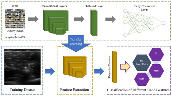 The overall schematic of the classification process: A transfer learning model was used to extract features from the images and the extracted features were then utilized to train the model using machine learning algorithms.