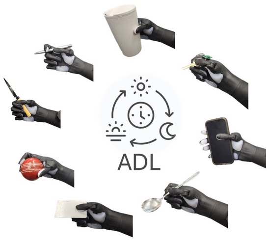 To identify the most important features of upper-limb prostheses, several studies have been conducted. The key factors can be listed as anthropomorphic characteristics (kinematics, size, weight, and appearance) [3,20], performance (speed, force, and dexterity) [21,22,23], and strong and integrative grasping [14,24,25]. Bioinspired motion speeds and adequate grip force are necessary for the device to be useful for carrying out the activities of daily living (ADLs) [26]. However, among the most fundamental needs for a robotic prosthesis is the capability to control the robot with sufficient precision and responsiveness of the fingers so that it may be used effectively and with sufficient dexterity [14,27,28,29].
