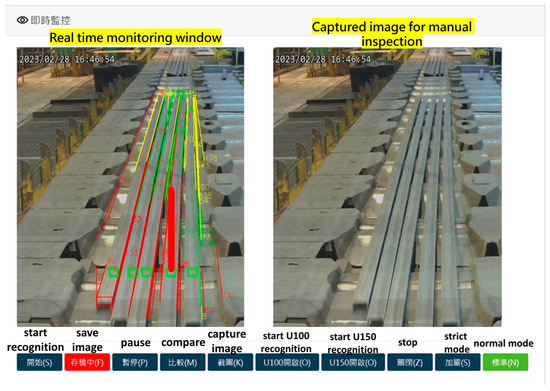 The web-based user interface provides real-time video monitoring, allowing operators to visualize the steel bar recognition process. Operators can dynamically adjust recognition parameters to meet current production specifications. For verification purposes, the video feed can be paused, enabling a comparative analysis between the displayed image and captured frames, as illustrated in Figure 16.