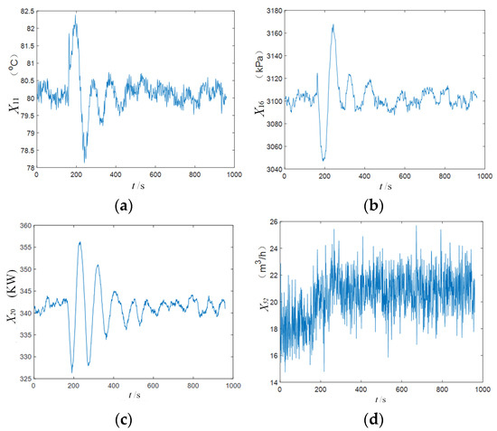 The time series trends of selected variables after the occurrence of IDV5 are shown in Figure 5. It can be observed that each variable exhibits a step change immediately following the disturbance, followed by damped oscillations that eventually stabilize.