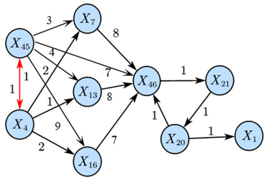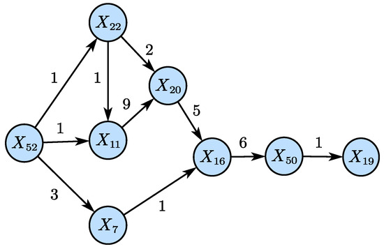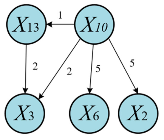 As shown in Figure 15, LSTE correctly identifies X10 as the root cause variable, with causal effects on other variables. Figure 16 illustrates the disturbance propagation path derived from Figure 15 and highlights the time lags associated with causal transmission.