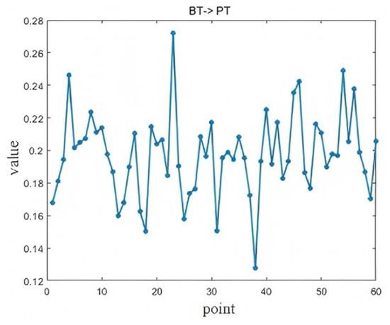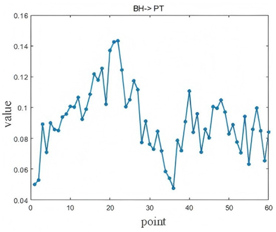 The causal time lag analysis results between three key operating variables—Blast Temperature (BT), Blast Humidity (BH), and Pulverized Coal Ratio (PCR)—and the Pig iron Temperature (PT) are presented in Figure 17, Figure 18, and Figure 19, respectively. The maximum LSTE values identified in each case pass the statistical significance test (p < 0.05).