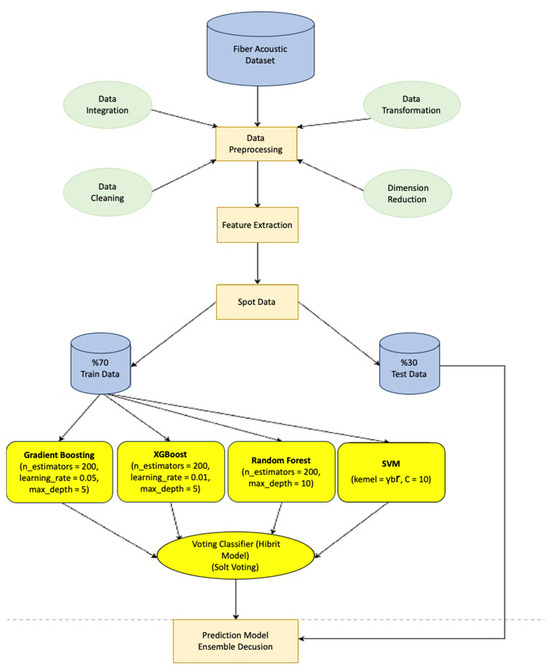 34]. In the study, a machine learning approach was adopted to classify environmental events correctly. This approach optimizes the process of processing and classifying data obtained from fiber optic sensors. Using different classification algorithms, data on ecological events were analyzed, and a hybrid model was developed to achieve the highest accuracy rate.