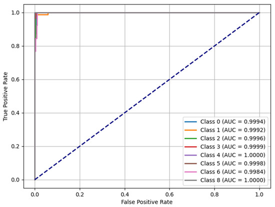 Furthermore, our model’s AUC scores, consistently above 0.99 for all classes, indicate excellent class discrimination capability, surpassing previous models that relied on traditional signal classification [