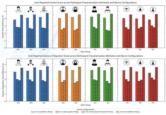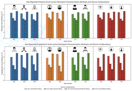 Subjective experience metrics were employed to capture the participants’ perceptions and qualitative feedback on their interaction with the teleoperation system. These metrics provided insights into the psychological and sensory aspects of the user experience, offering a valuable complement to the objective performance data. The evaluation focused on five core dimensions: