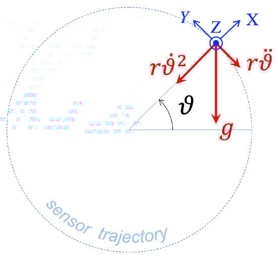 In the above, denotes the angular position of the sensor on its circular trajectory; therefore defines its angular velocity and the angular acceleration.