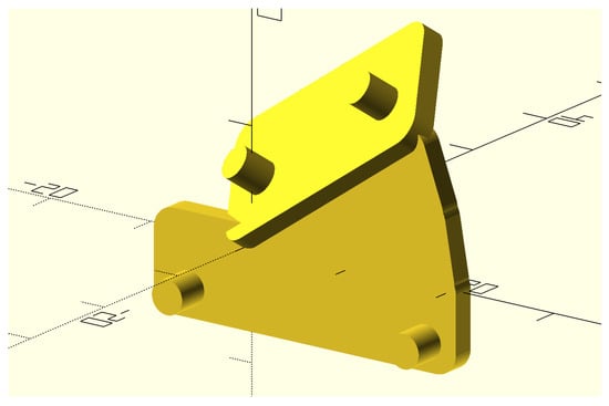 The shape of the 3D-printed support fastening the accelerometer under test to the MCU board and holding the sensor in the tilted orientation discussed in Section 3.2 and shown in Figure 5.